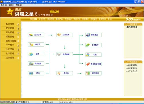 思迅烘焙之星10專門針對面包糕點店、烘焙混合店設(shè)計的商業(yè)進銷存連鎖管理系統(tǒng)。滿足烘焙行業(yè)的原材料管理、商品BOM、生產(chǎn)加工、成本核算、商品銷售及預定管理。實現(xiàn)總部統(tǒng)一管理、中央工廠統(tǒng)一生產(chǎn)加工、門店銷售及生產(chǎn)加工的連鎖經(jīng)營管理模式。